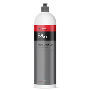 Innowacyjna politura maszynowa do szybkiego polerowania bardzo wyblakłych lakierów, do usuwania głębokich zadrapań i skutecznego usuwania tzw. mgły lakierniczej oraz zgładów i zmatowień po papierze o gradacji aż do P1200. Heavy Quick Cut B9.01 przez niezwykle jednorodne ziarno materiału ściernego osiąga wyjątkowo wysoki poziom cięcia i zapewnia bardzo dobry stopień połysku. Daje się długo polerować przy bardzo nieznacznej emisji pyłu. Doskonale nadaje się do wszystkich rodzajów lakierów (zarówno miękkich, jak i odpornych na zarysowania). Produkt nie zawiera silikonu.