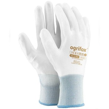 Rękawice ochronne wykonane z poliestru, powlekane poliuretanem.